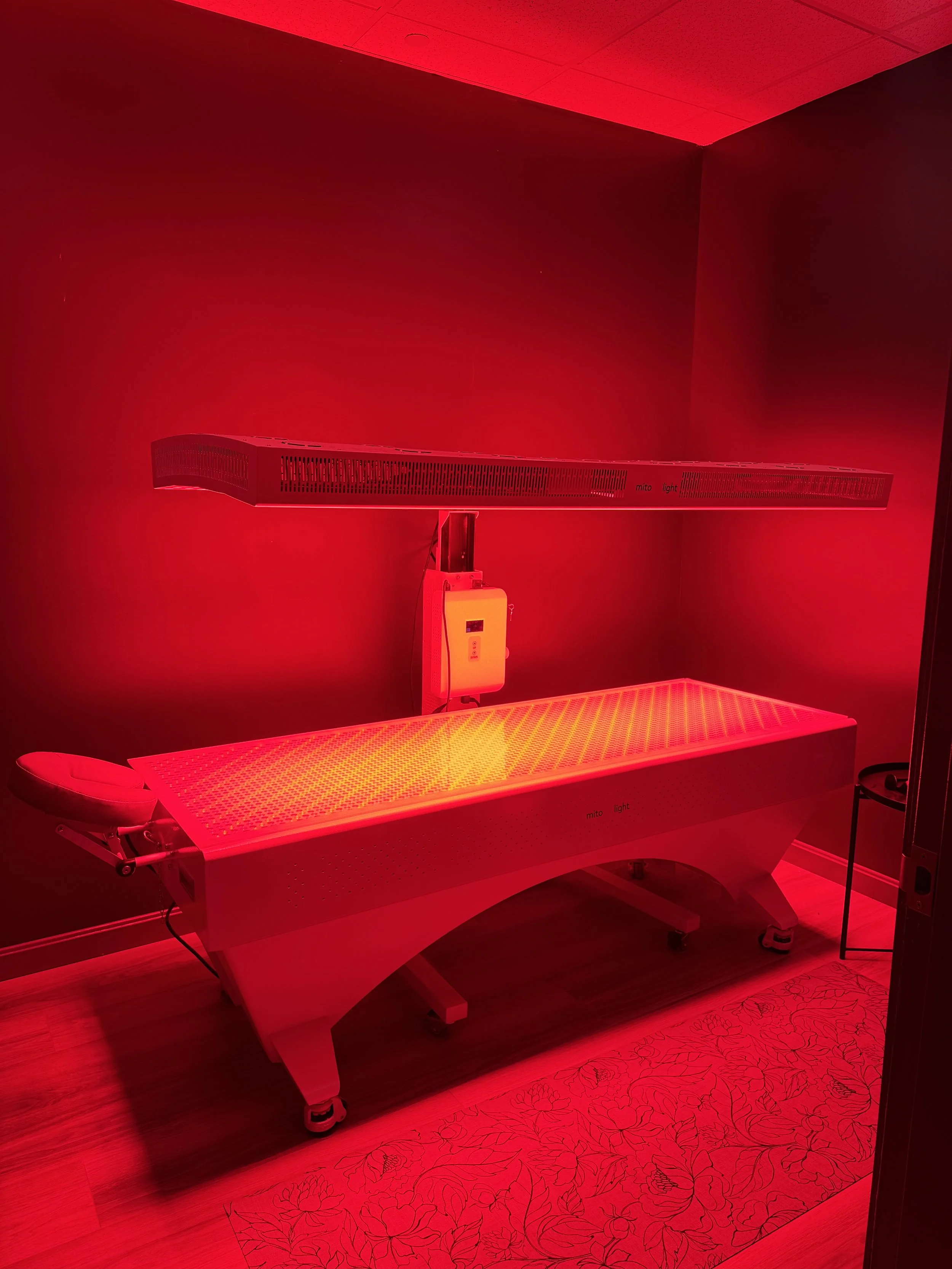 We have a full length red light bed which has over 4,200 high powered LED’s and utilizes special lenses to focus on the body. There are 4 spectrums of light in the bed (Red - 630, 660 and NIR - 810 & 850)